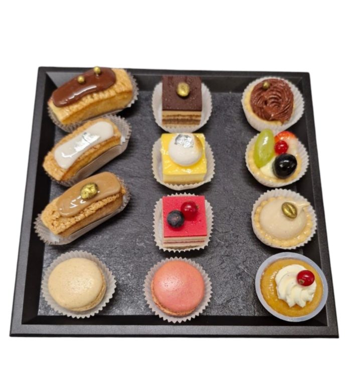 Opéra • Financier pistache • Tartelette café • Opéra fruits rouges • Tartelette citron • Eclair vanille, chocolat, ou café • Mini dacquoise • Farandole de tartelettes aux fruits frais • Entremet mousse.